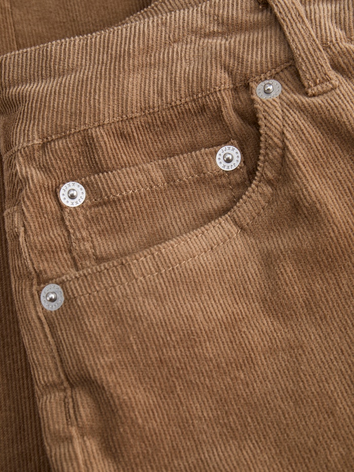 Corduroy é um tecido nervurado e aveludado com uma textura espessa para calor e volume.