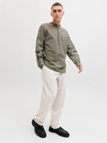 - 81% Algodão, 15% Linho, 4% Elastano