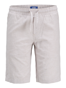 Os calções de corrida têm um cordão e cintura elástica, o que os torna super confortáveis. Vêm em todos os tipos de tecidos e acessórios. O Twill é um tecido durável, tecido caracterizado pela sua assinatura "V" ou "W" padrão que cria um look clássico. Descubra o mundo muito porreiro da Jack and Jones Junior, onde a moda ganha vida com uma explosão de energia juvenil e um encanto vibrante. As nossas coleções são uma mistura de designs frescos, modernos e muito porreiros, adaptados a rapazes dos 3 aos 16 anos. Mergulhe em estilos confortáveis e de alta qualidade que realçam a moda masculina. Desde os modelos mais modernos até ao estilo contemporâneo, a Jack and Jones Junior redefine a moda para as idades entre os 3 e os 16 anos e abraça o espírito da idade adulta em cada roupa.. - Tipo de produto : Calções de corte relaxado - Bolsos : Bolsos frontais - Detalhes extra : Cordão na cintura, Cintura elástica - Ajuste : Regular Fit