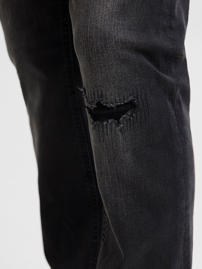 - Ajuste : Jeans slim fit com altura média, coxa fina, joelho fino, abertura apertada nas pernas