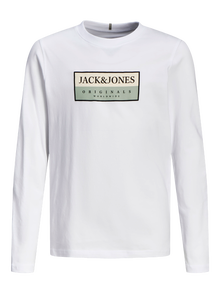 Não fica mais simples do que uma T-shirt. Poderá usar com qualquer peça do seu guarda-roupa. O Jersey é elástico e tem um toque suave, perfeito para o uso diário. Descubra o mundo muito porreiro da Jack and Jones Junior, onde a moda ganha vida com uma explosão de energia juvenil e um encanto vibrante. As nossas coleções são uma mistura de designs frescos, modernos e muito porreiros, adaptados a rapazes dos 3 aos 16 anos. Mergulhe em estilos confortáveis e de alta qualidade que realçam a moda masculina. Desde os modelos mais modernos até ao estilo contemporâneo, a Jack and Jones Junior redefine a moda para as idades entre os 3 e os 16 anos e abraça o espírito da idade adulta em cada roupa.. - Tipo de produto : T-shirt - Decote : Decote Redondo - Manga : Mangas Compridas - Tipo de estampado : Estampado em borracha para um toque suave - Ajuste : Standard Fit