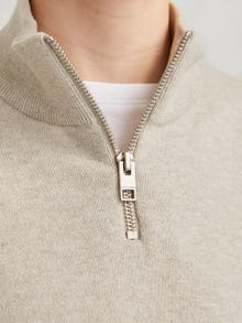 Este é o tipo de malha descontraída que pode usar no fim-de-semana com calças de ganga, assim como sobre uma camisa e calças no escritório. A malha nervurada tem cristas verticais e é muito elástica para uma sensação de conforto. Descubra o mundo muito porreiro da Jack and Jones Junior, onde a moda ganha vida com uma explosão de energia juvenil e um encanto vibrante. As nossas coleções são uma mistura de designs frescos, modernos e muito porreiros, adaptados a rapazes dos 3 aos 16 anos. Mergulhe em estilos confortáveis e de alta qualidade que realçam a moda masculina. Desde os modelos mais modernos até ao estilo contemporâneo, a Jack and Jones Junior redefine a moda para as idades entre os 3 e os 16 anos e abraça o espírito da idade adulta em cada roupa.. - Tipo de produto : Pullover - Decote : Gola alta - Manga : Mangas Compridas - Fecho/braguilha : Fecho parcial com fecho éclair - Ajuste : Regular Fit