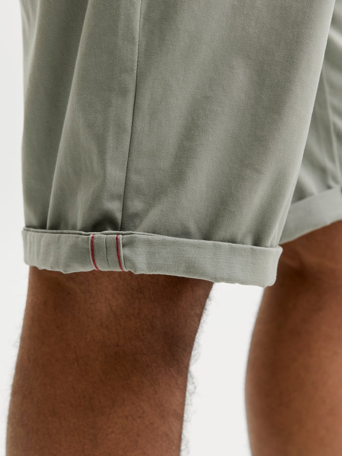 Eleve o seu guarda-roupa com um par de calções chino. Este básico intemporal é a alternativa de tempo quente à ganga.