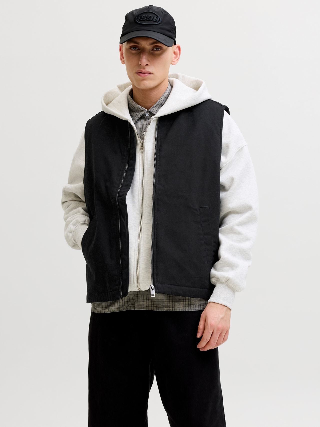 Procure um look casual com um gilet que seja fácil de condizer e combinar com uma T-shirt ou uma camisola, dependendo do tempo.