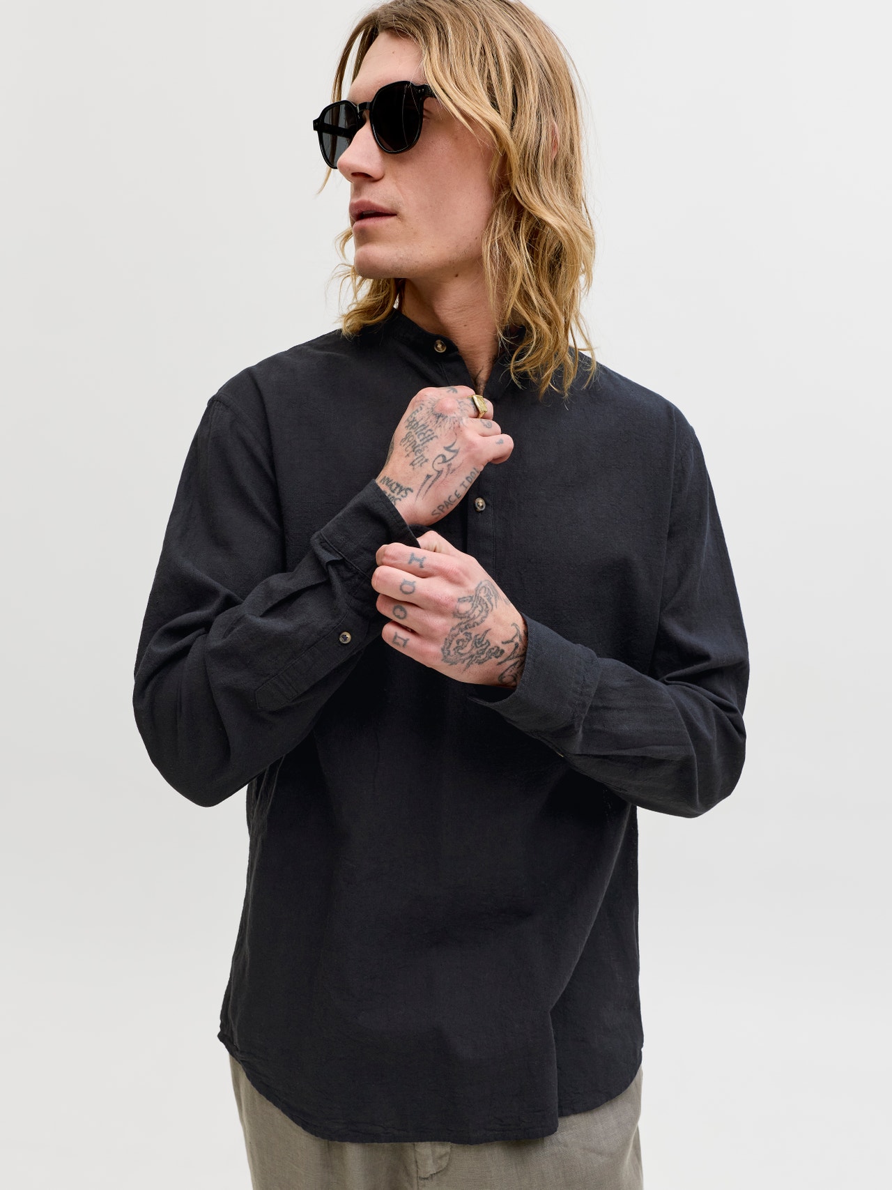 Uma qualidade de linho leve e respirável com uma textura natural e arejada, que o mantém confortável.