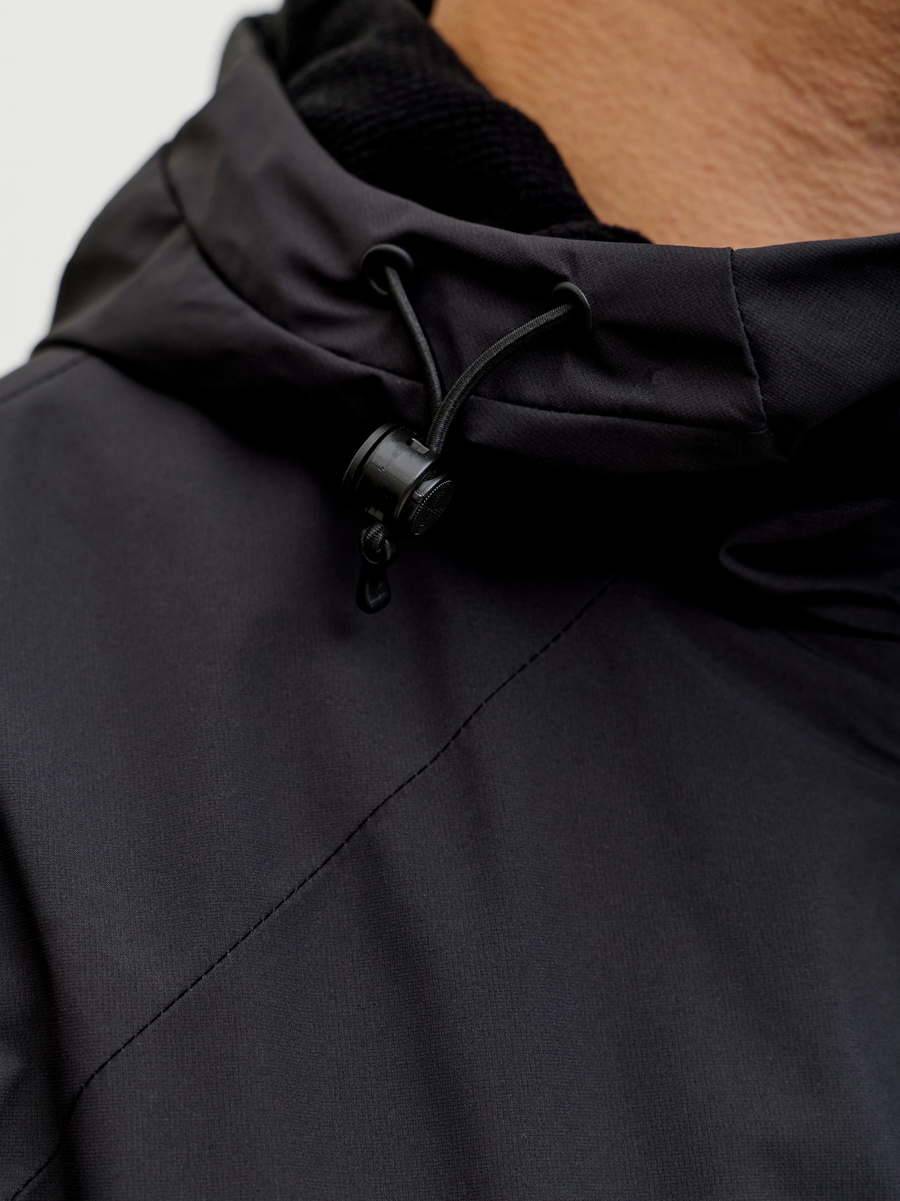 - Decote : Capuz com cordão