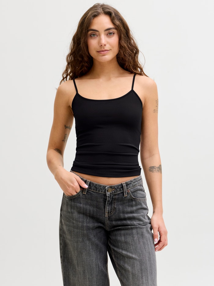 Este guarda-roupa essencial acompanha basicamente tudo. De jeans apertados a loungewear, o top básico é um must-have.