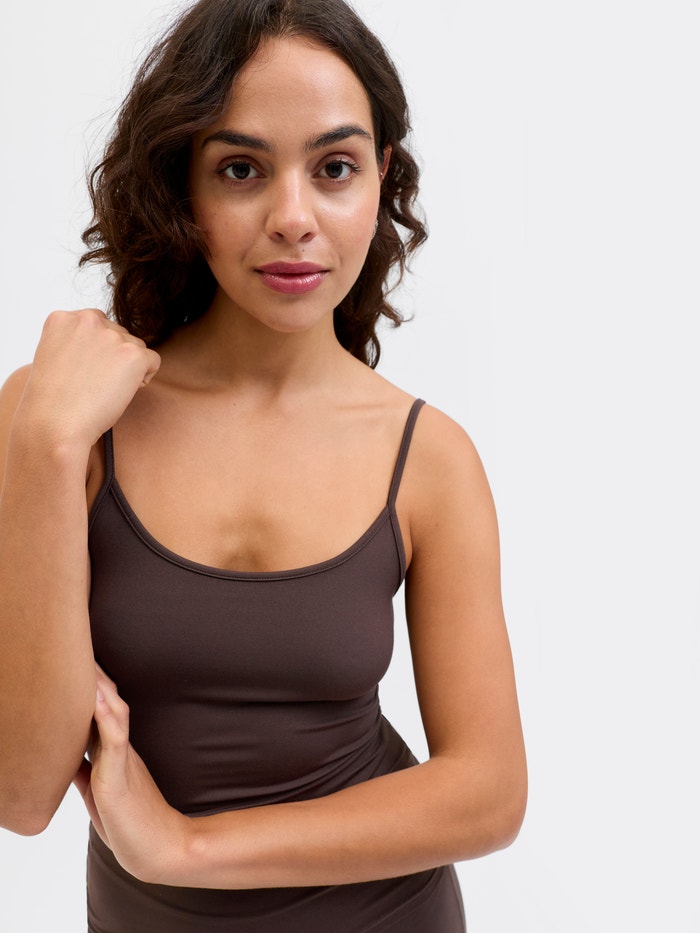 Este guarda-roupa essencial acompanha basicamente tudo. De jeans apertados a loungewear, o top básico é um must-have.