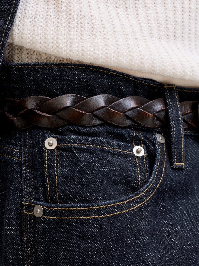 - Lavagem/acabamento : Lavagem média para um aspeto de ganga lavado e desgastado