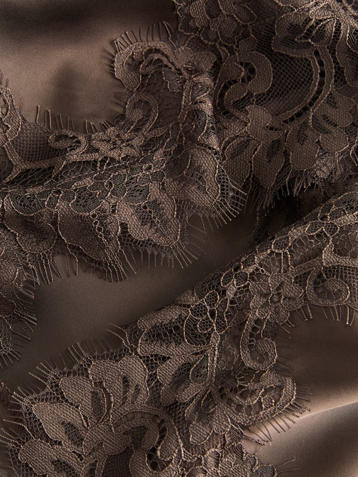O cetim tem uma superfície brilhante, suave e resistente a rugas para um visual exclusivo.