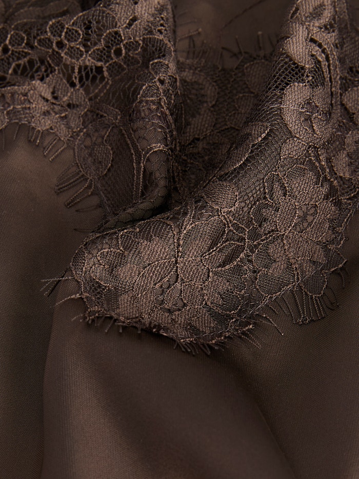 O cetim tem uma superfície brilhante, suave e resistente a rugas para um visual exclusivo.