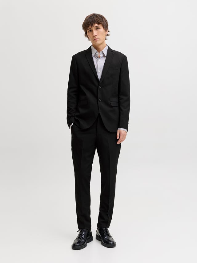 Slim fit blazers and trousers are cut slightly closer to the body and arms to achieve a slimmer silhouette. The regular fit ones are cut slightly looser – without compromising on the tailored look. And remember; our suits have just the right amount of added stretch to ensure comfort, so whatever floats your boat, you’ll be comfortable all night.