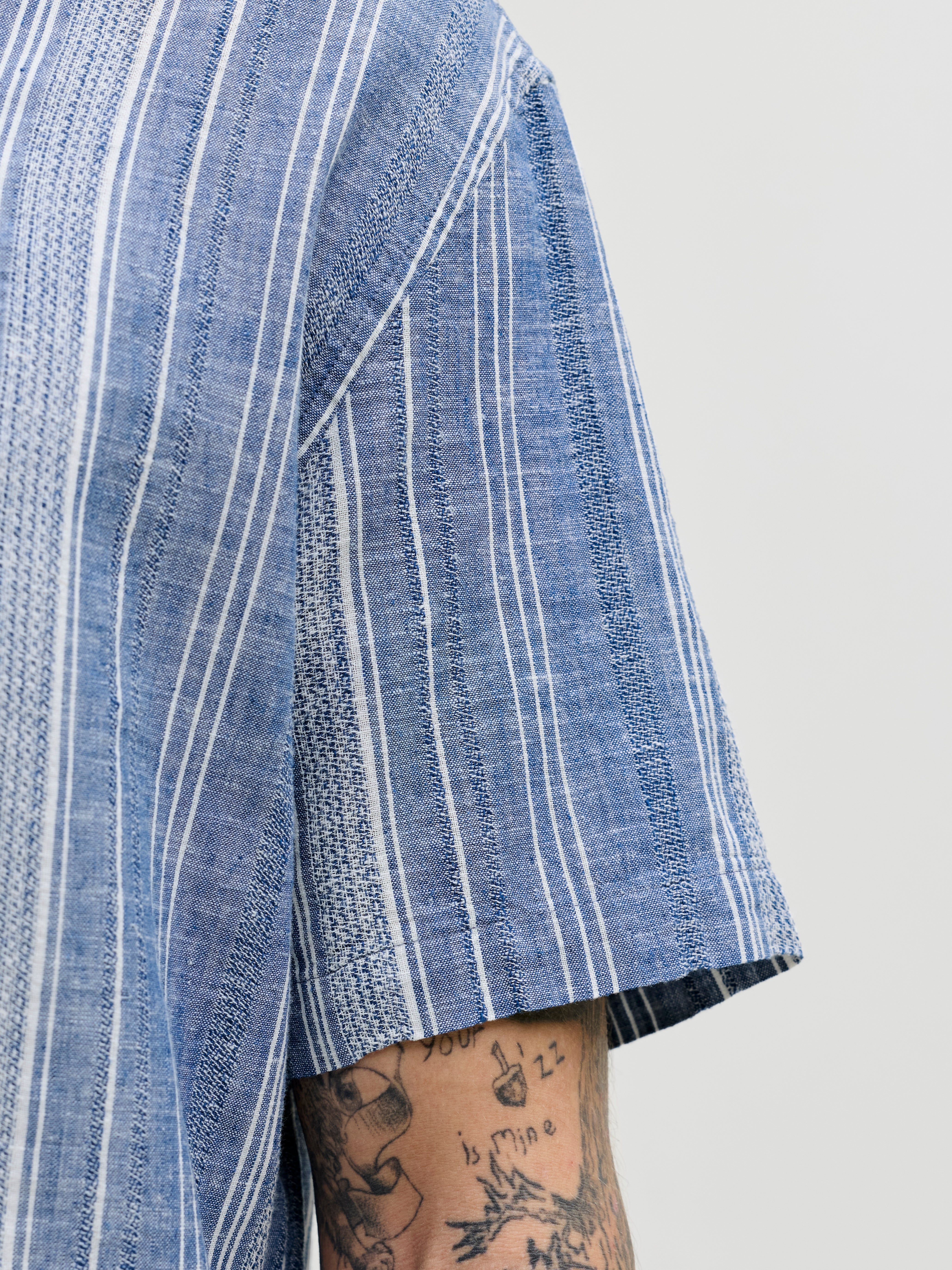 Tkanina Dobby má malé geometrické vzory, ktoré dodávajú štruktúru pre rafinovaný vzhľad.