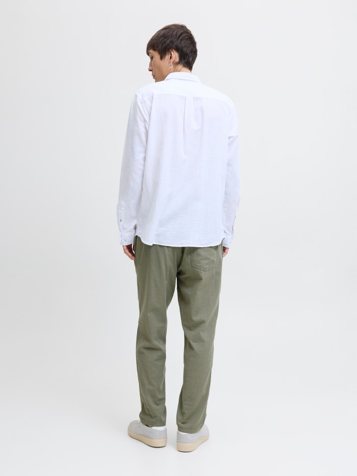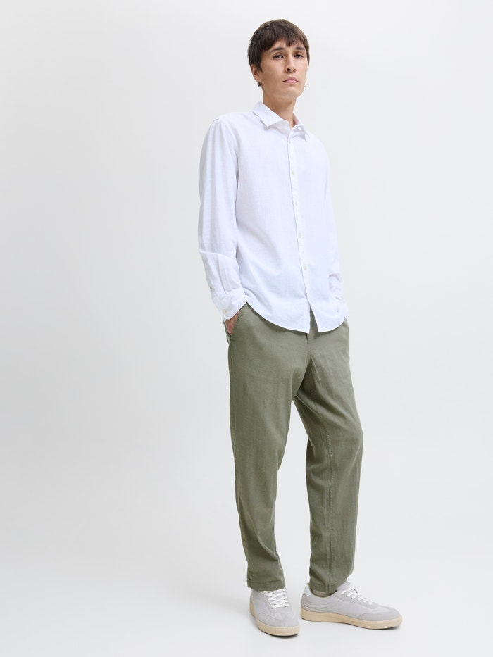 - 83% Cotton, 15% Linen, 2% Elastane