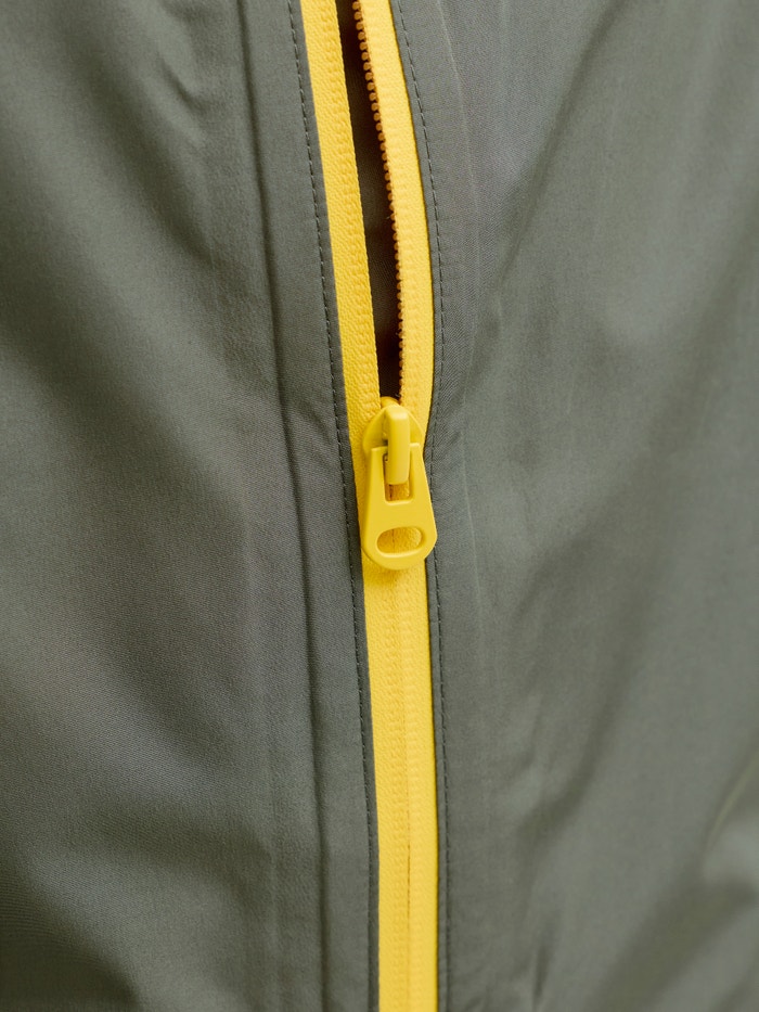 Një xhaketë shiu me një shtresë të papërshkueshme nga uji për t'ju mbajtur të thatë.