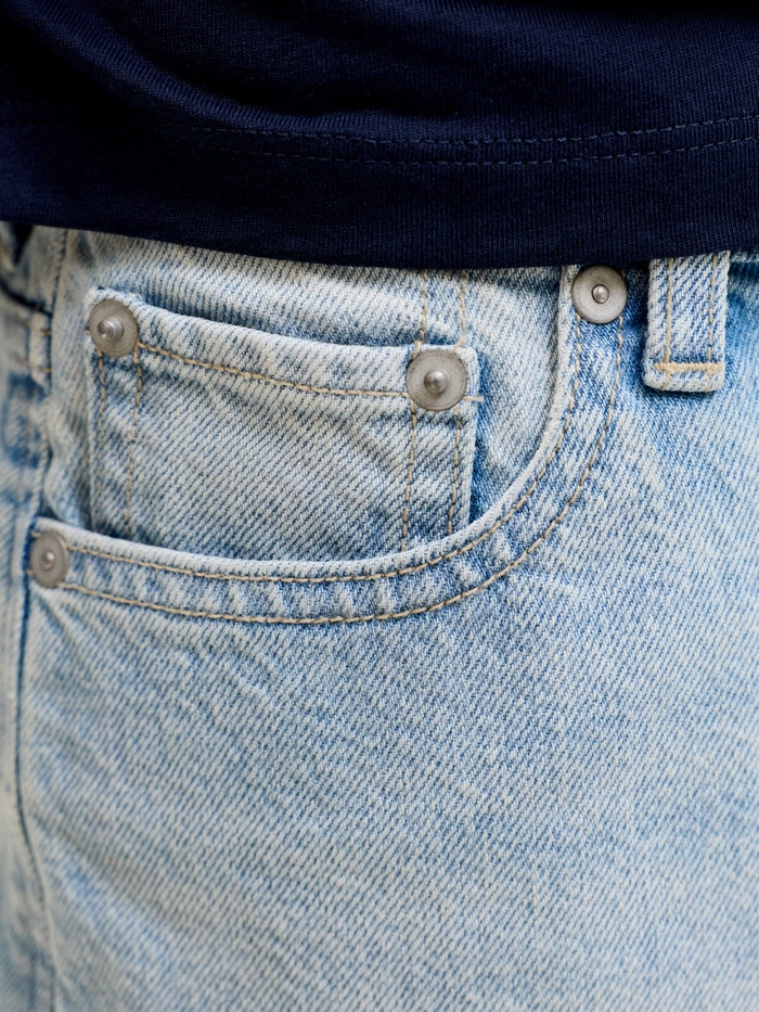 - Fit : Pantallona të shkurtra xhins ekstra të gjera me një këmbë të rënë dhe hapje të lirshme të këmbës
