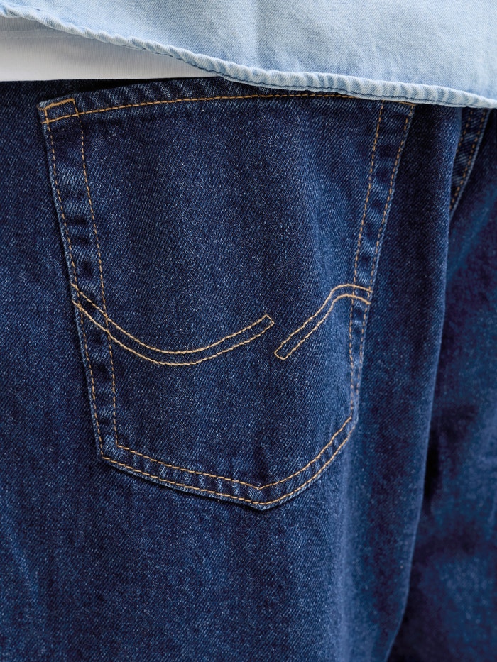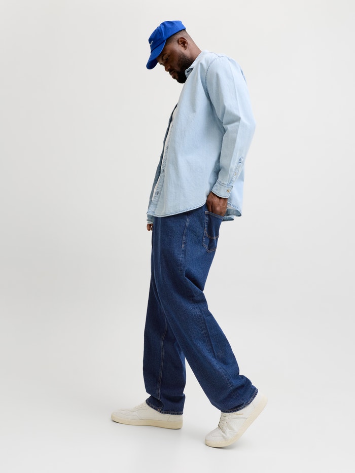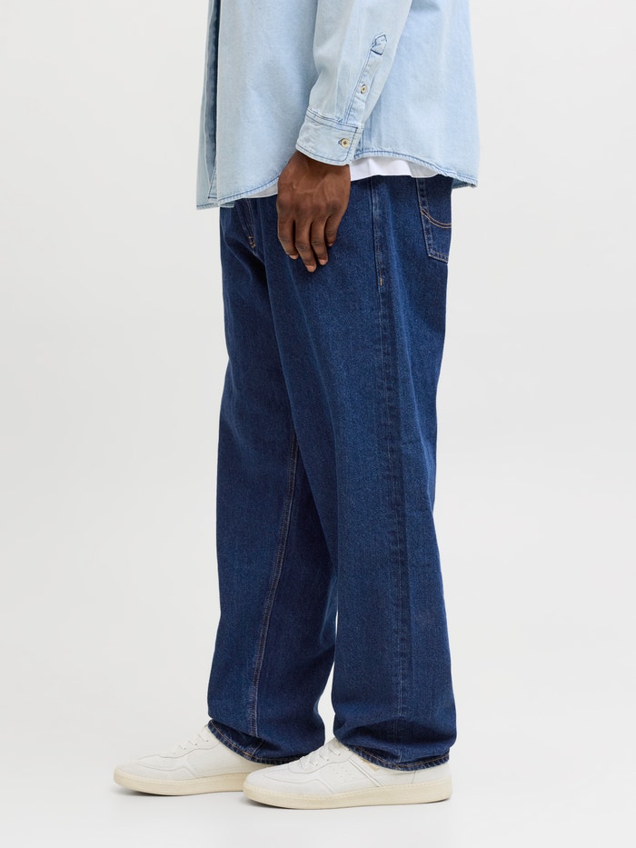 - Fit : Përshtatje e relaksuar me një ngritje të lartë, kofshë të relaksuar, gju të relaksuar dhe hapje të relaksuar të këmbëve