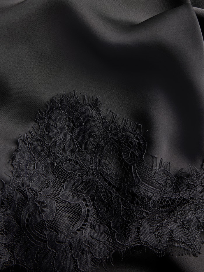 Saten ka një sipërfaqe me shkëlqim, të lëmuar dhe rezistente ndaj rrudhave për një pamje ekskluzive.