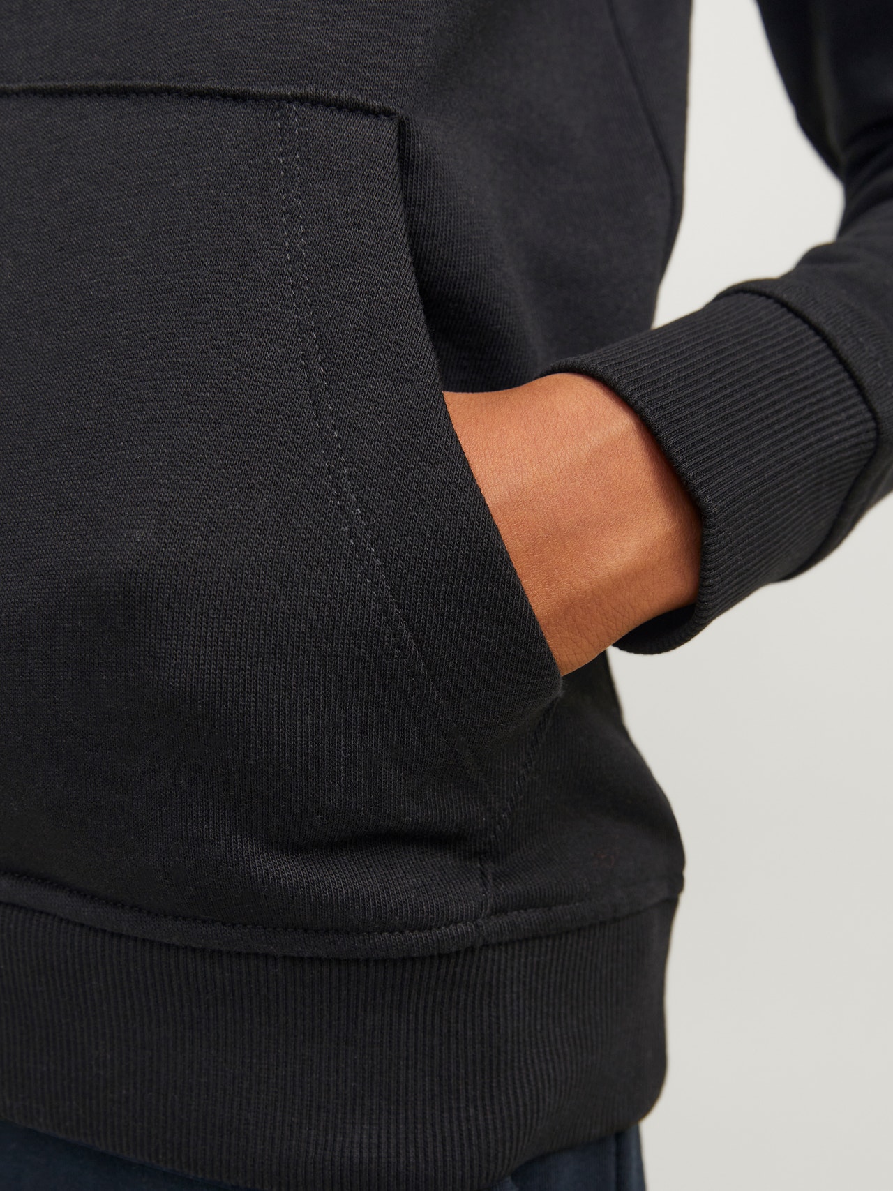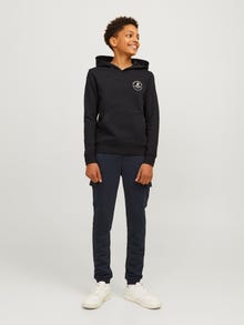 No wardrobe is complete without a few dependable staples like sweats. Brushed fabric with a soft finish on the inside. Lightly brushed fabrics are defined by the inside of the fabric having a slightly hairy texture and a soft feel. Discover the cool world of Jack and Jones Junior, where fashion comes alive with a burst of youthful energy and vibrant charm. Our collections are a blend of fresh, trendy, and cool designs tailored to fit boys aged 3-16. Immerse yourself in high-quality, comfortable styles that highlight boys’ fashion. From cool fits to contemporary flair, Jack and Jones Junior redefines fashion for ages 3-16 and embraces the spirit of adulthood into every outfit. - Product Type : Hoodie - Neck : Hoodie - Sleeve : Long sleeves - Sleeves : Set in sleeves - Pockets : Kangaroo pocket - Lining : Body fabric inside hood - Print : Rubber print for a soft feel - Fit : Regular Fit
