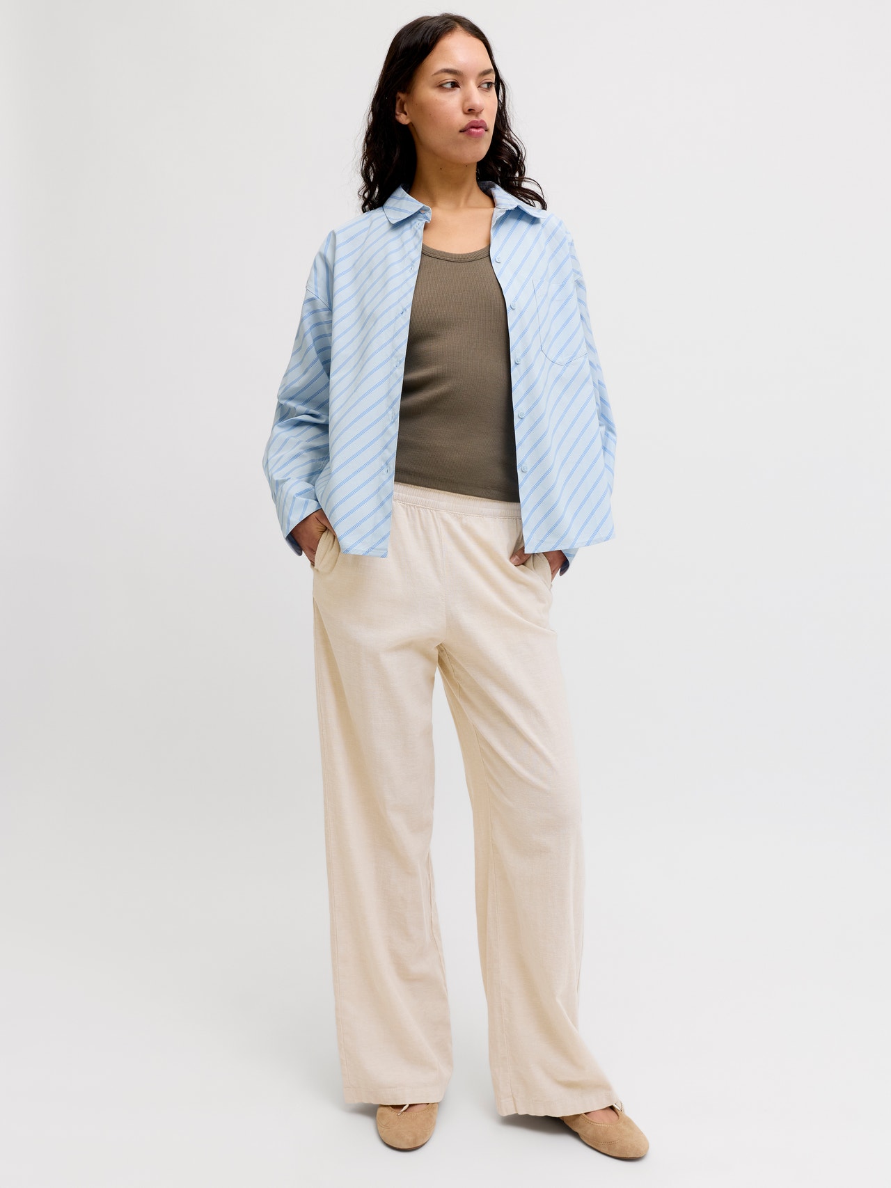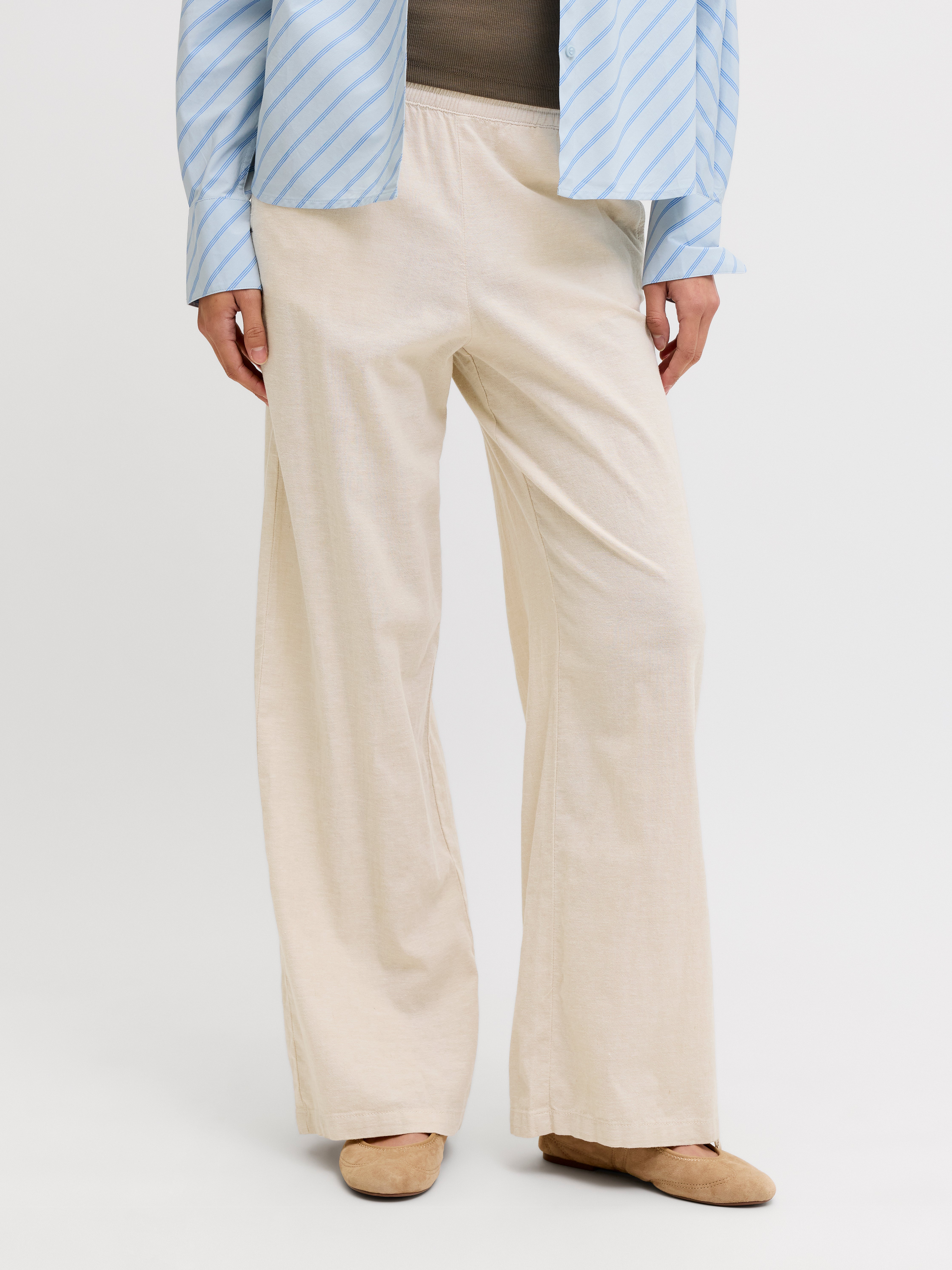 - 64% Linneblandad, 35% Bomullssydd, 1% Elastan
