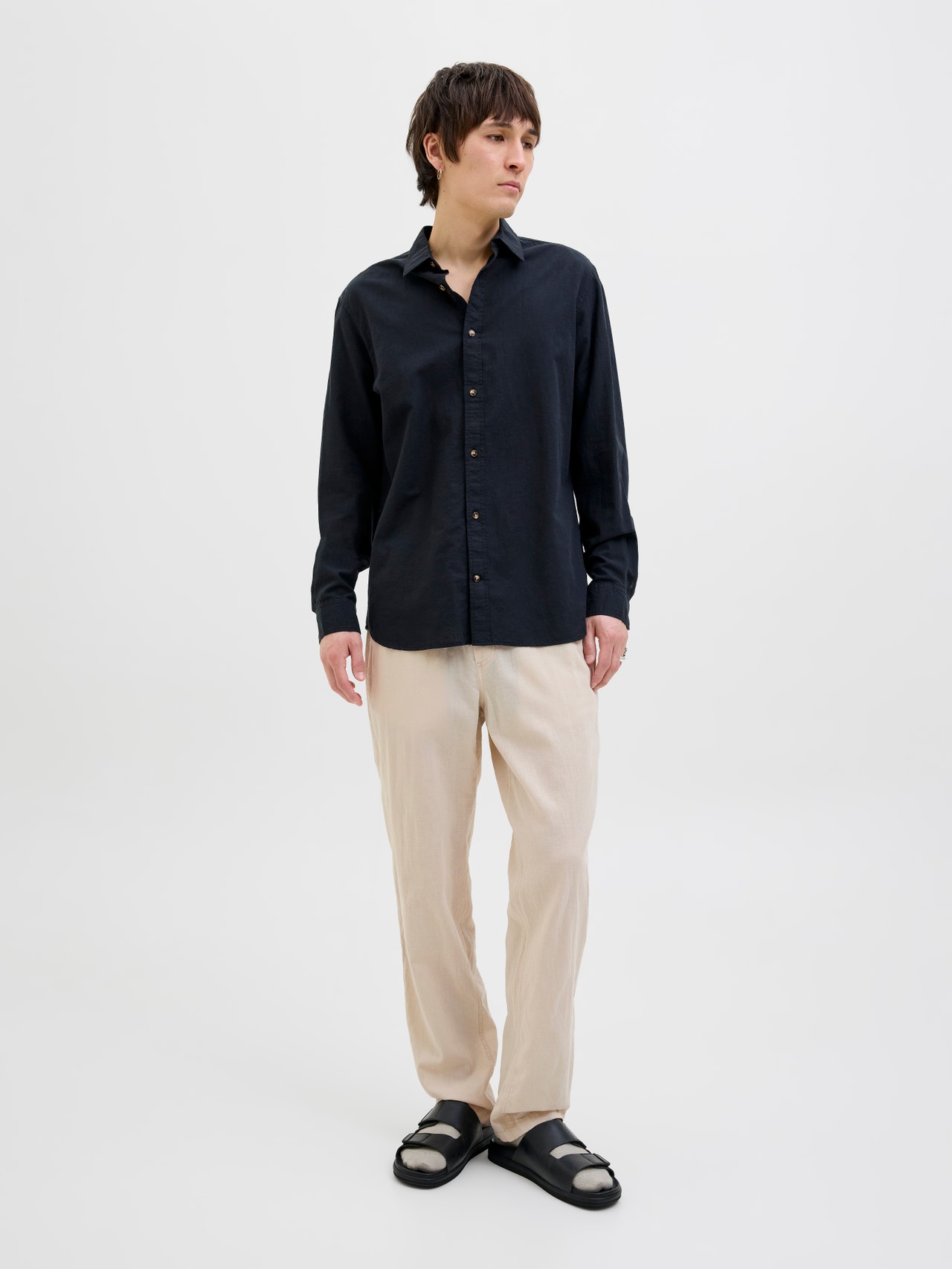 - 81% Bomullssydd, 15% Linneblandad, 4% Elastan