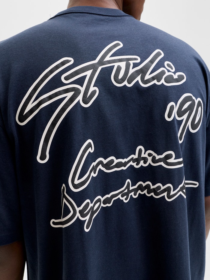 - Print : Tryck placerat på fram- och baksidan av produkten, Pigmenttryck för ett mjukt tryck på ljusare plagg