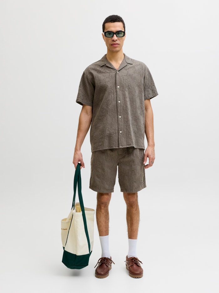 Jacquard är ett mönster som vävs direkt in i tyget, snarare än att broderas eller tryckas. Det är slitstarkt och hållbart, med en strukturerad och skrynkelfri känsla.