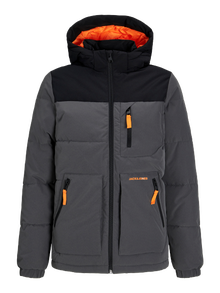This warm, insulating jacket is perfect for the cold winter months. Quilt fabric is made up of two or more layers stitched together for a warm and insulating feel. Discover the cool world of Jack and Jones Junior, where fashion comes alive with a burst of youthful energy and vibrant charm. Our collections are a blend of fresh, trendy, and cool designs tailored to fit boys aged 3-16. Immerse yourself in high-quality, comfortable styles that highlight boys’ fashion. From cool fits to contemporary flair, Jack and Jones Junior redefines fashion for ages 3-16 and embraces the spirit of adulthood into every outfit. - Product Type : Puffer jacket - Functionality : Windproof - Neck : Hood - Sleeve : Long sleeves - Cuffs : Cuffs with elastic binding - Closing : Zip fastening - Pockets : Chest pocket, Front pockets with zip fastening - Length/Size : Short - Lining : Recycled polyester lining for a comfortable feel - Padding : Recycled polyester padding for warmth