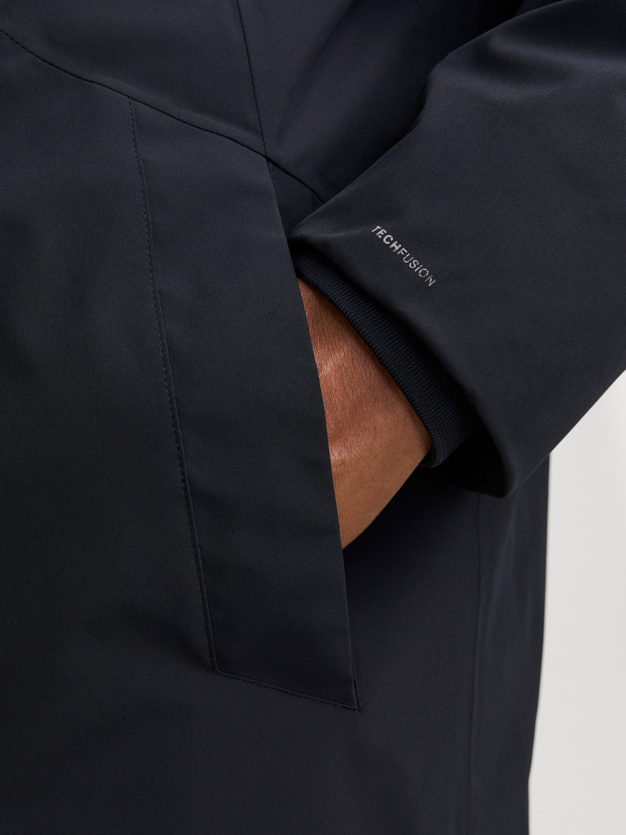 Hood with string regulation Plus Ribbed cuffs Parka
