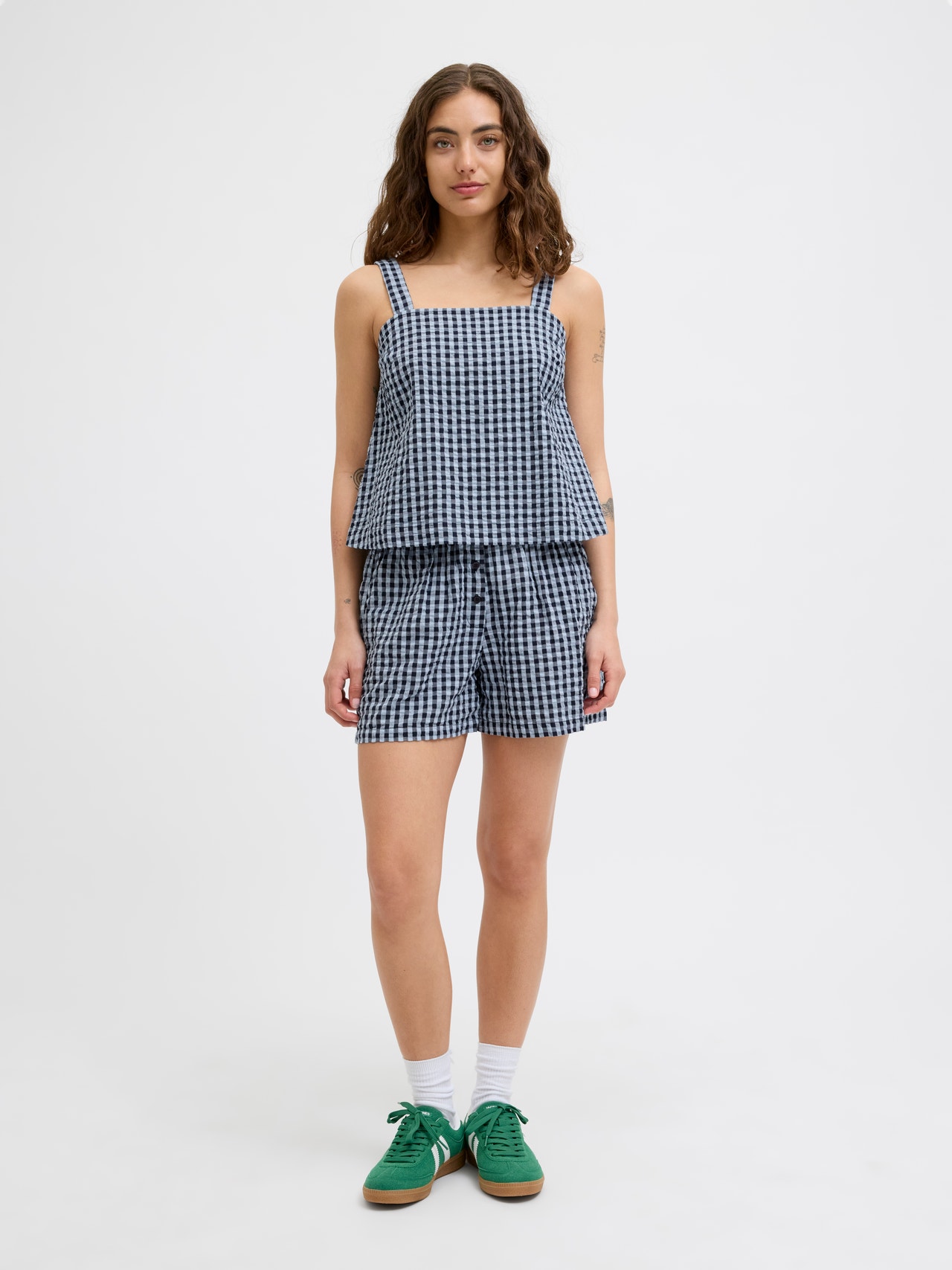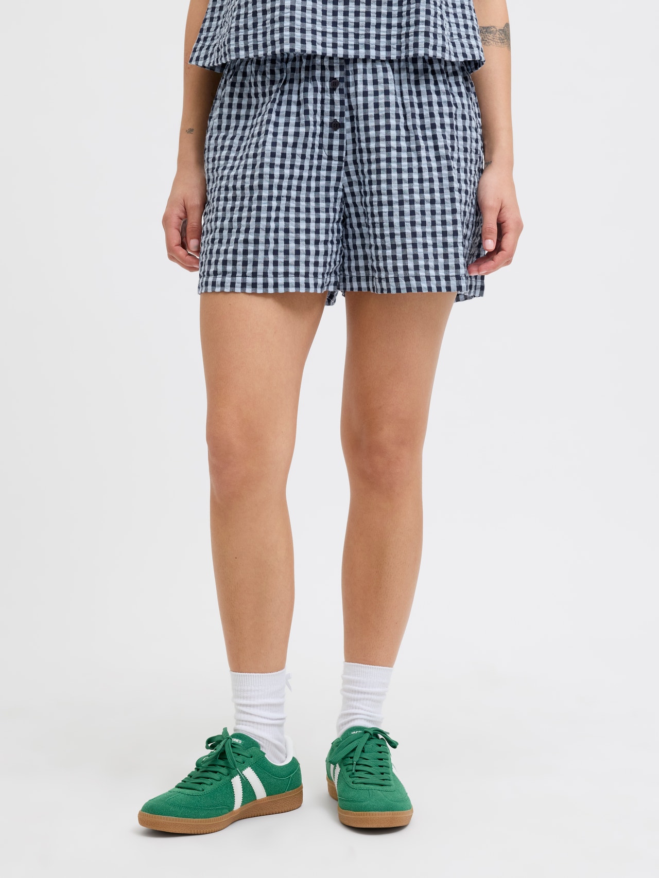 Jogger shorts have a drawstring and elasticated waistband, which make them super comfortable. They come in all types of fabrics and fittings. Seersucker is a lightweight fabric with a wrinkled appearance for a breathable and cooling feel. - Product Type : Shorts - Pockets : Front pockets - Waist : Mid waist - Extra details : Elasticated waistband - Fit : Wide Leg Fit